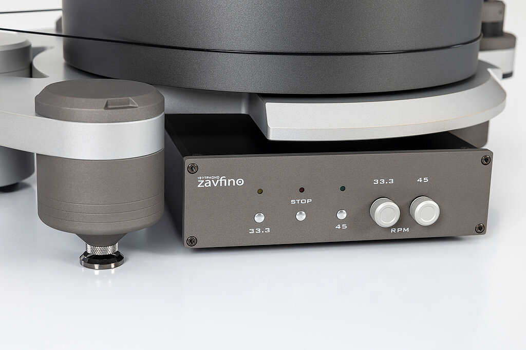 Das separate Motorengehäuse wird aus einem massiven Aluminiumblock gefertigt und wiegt 1,8 kg. Der gekapselte 9-V-Motor mit POM-Riemenscheibe arbeitet vibrationsarm und ermöglicht die elektronische Wahl der Geschwindigkeiten 33,3 und 45 U/min, inklusive Feineinstellung. Ein externes Universalnetzteil (100–240 V, 50/60 Hz) sorgt für eine konstante Energieversorgung und ermöglicht den weltweiten Einsatz.